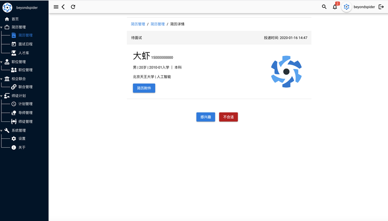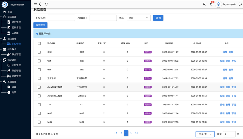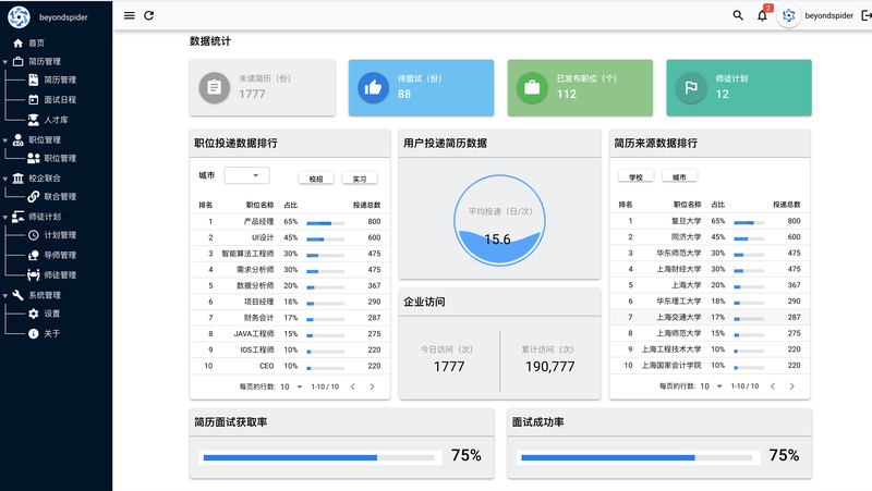 校园招聘系统,包括简历管理、面试管理、职位管理等功能,UI美观。