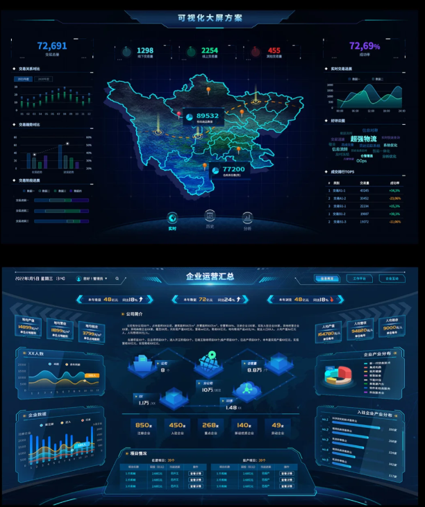 经济运行维度:需实时 / 定期跟踪区域 / 企业的经济指标(如产值、营收、增长率等),通过数据可视化快速定位经济亮点与短板,为政策调整或经营策略优化提供依据;