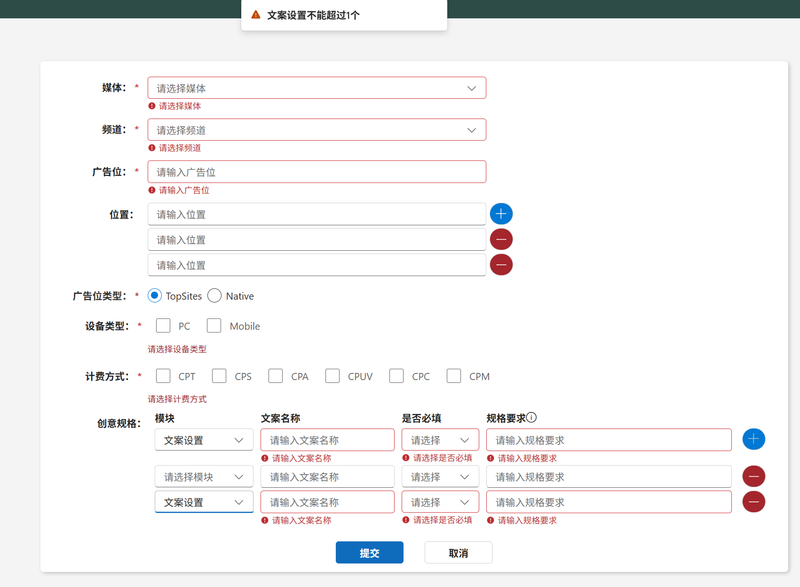 2.审核系统,用于投放系统客户提出的广告创意、物料、用户定义的搜索关键词信息、广告主资质信息进行审核的系统。因为内部运营人员使用,所以用了阿里技术栈,使用React18 + antd 5开发