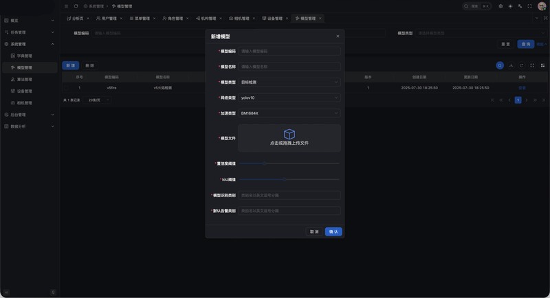 支持对视频分析模型进行新增、删除、更新、版本管理。