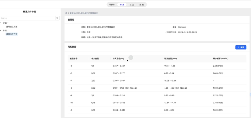 针对工业制造工艺标准的制定需求,具备两大核心能力:一是支持工艺标准公式的规范化制定与科学性验证;二是提供 “参数输入 - 自动计算 - 指标输出” 的全流程自动化服务 —— 公式固化后,仅需填入具体工艺入参,即可快速生成标准统一的工艺指标,大幅降低人工计算误差,提升工艺标准制定的效率与精准度。