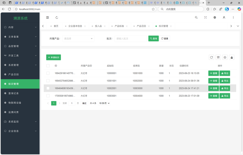 核心后端开发: 实现产品信息、批次、溯源码的生成与管理API;开发数据采集接口供上下游企业调用。