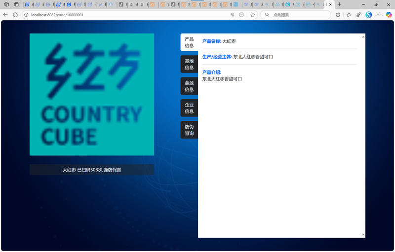 前端开发: 负责管理后台的开发(用于企业录入和查询数据),并主导面向消费者的H5扫码查询页面开发。