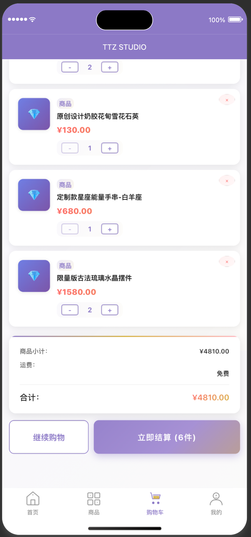 公共组件库:包含商品卡片、购物车项、价格显示等多个可复用组件