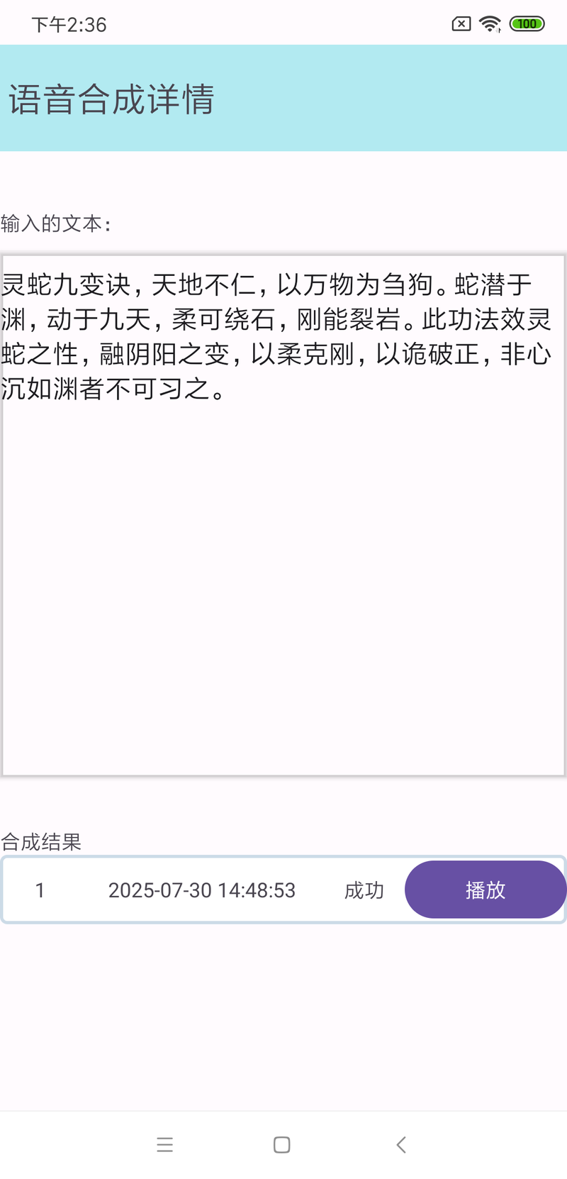 记录了每一次语音合成的情况,可以查看每次合成时输入的文字,可以回放每次合成的语音。