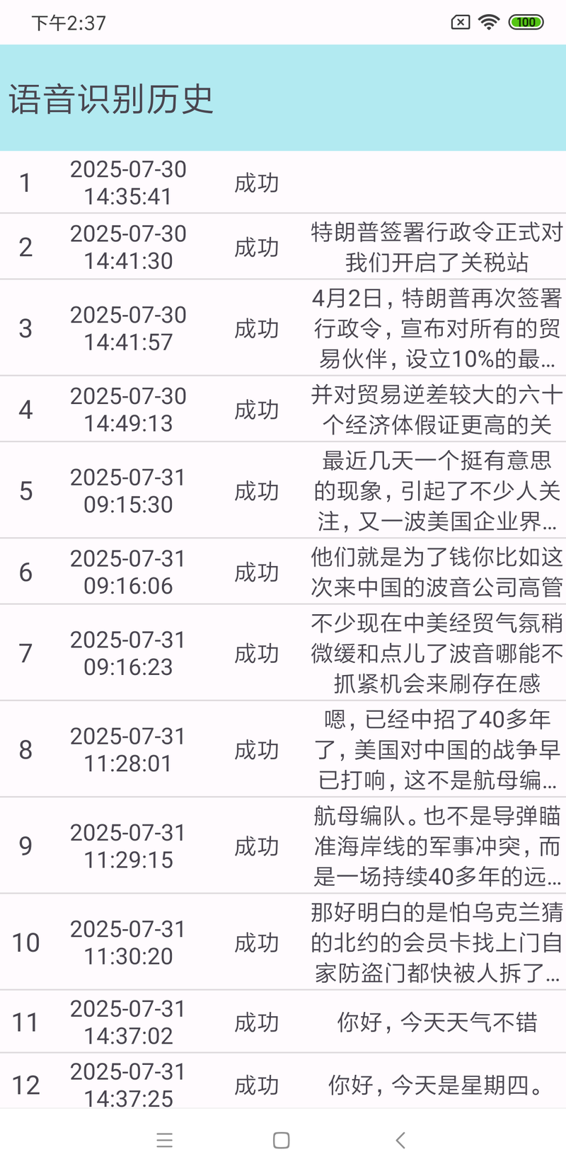 记录了每一次语音识别的情况,可以回放每一次识别时输入的语音,可以查看每一次识别出来的文字结果