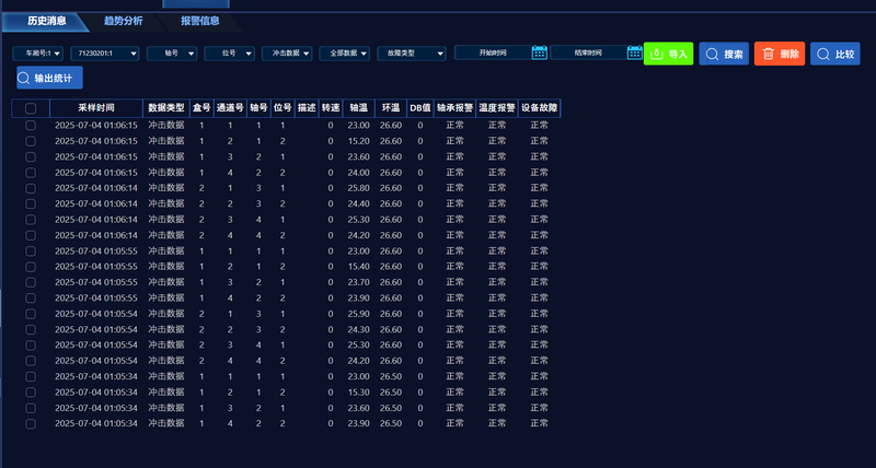 2,数据展示,将车载数据打包下载下来,进行展示,展示历史数据,详细数据,趋势数据