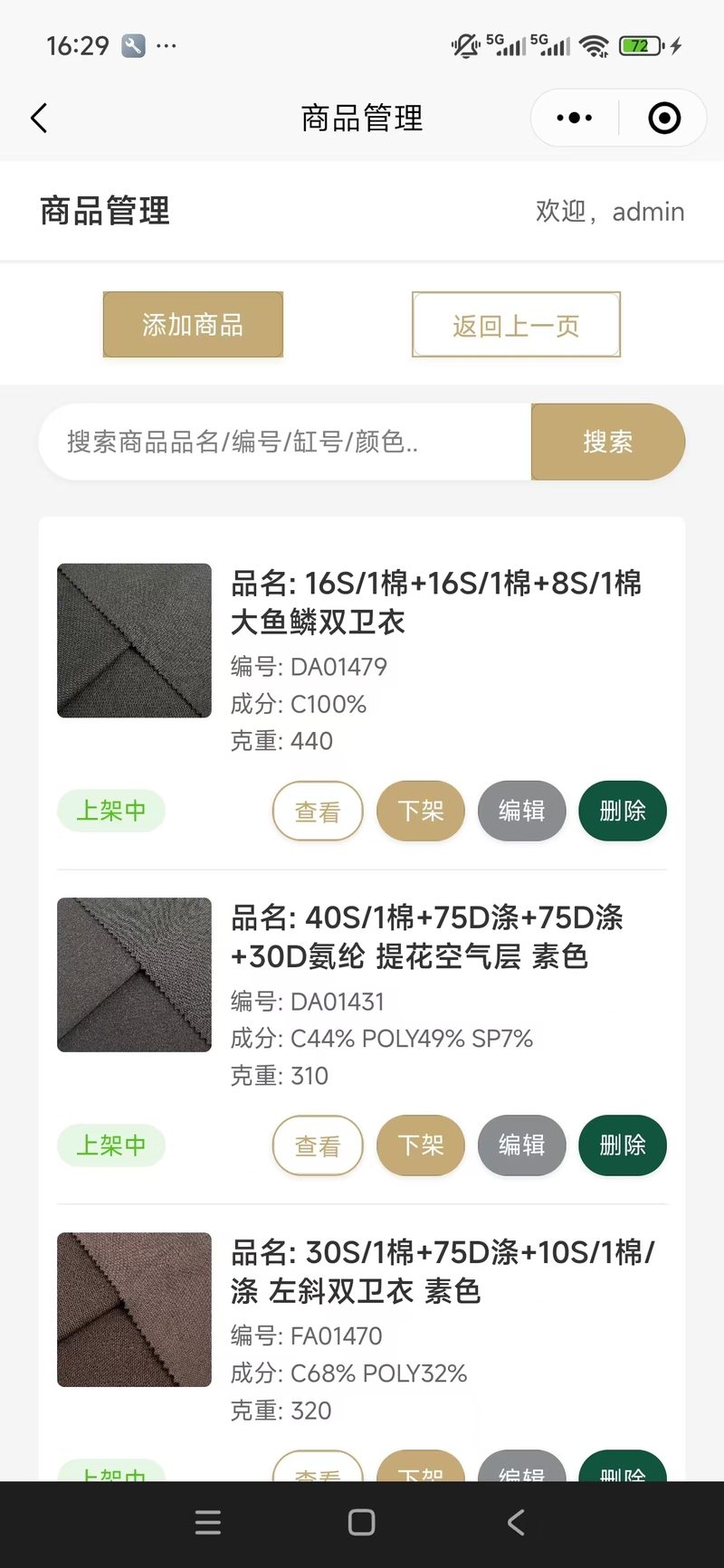 3、企业内部人员管理样品(上下架,修改产品信息,新增删除等,支持图片和视频)+订单需求功能(修改订单状态,删除等功能)