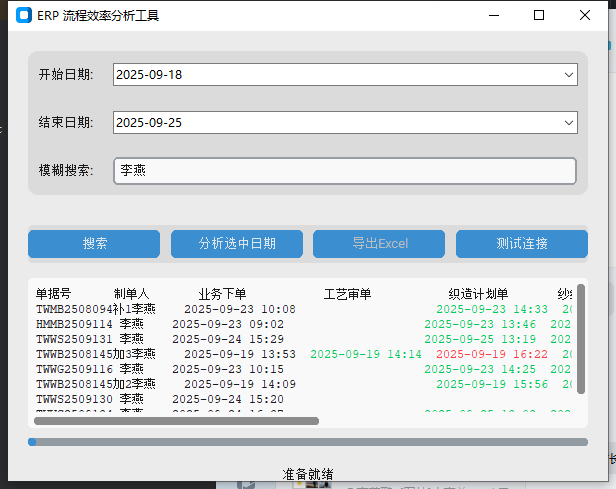 4、一键导出Excel报告 :将分析完成的数据,包括所有流程节点的时间、状态以及告警信息,方便地导出为格式化的Excel表格,便于数据存档、制作报告或进行更深入的离线分析。