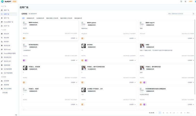 低代码开发:通过可视化且低代码的流程编排,整合提示词、业务数据集和插件工具,构建面向特定业务场景的半自主智能体。