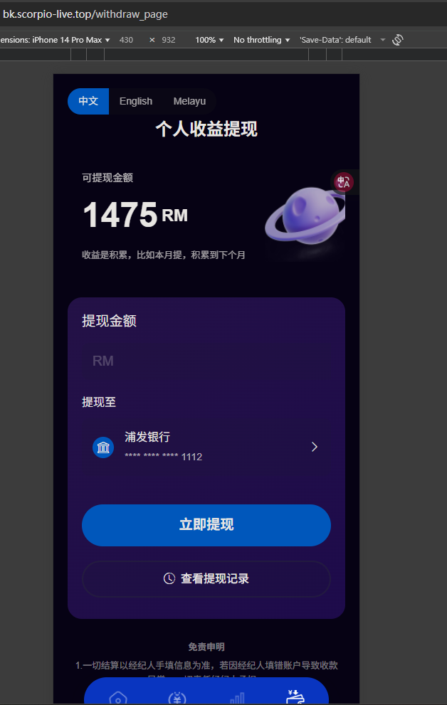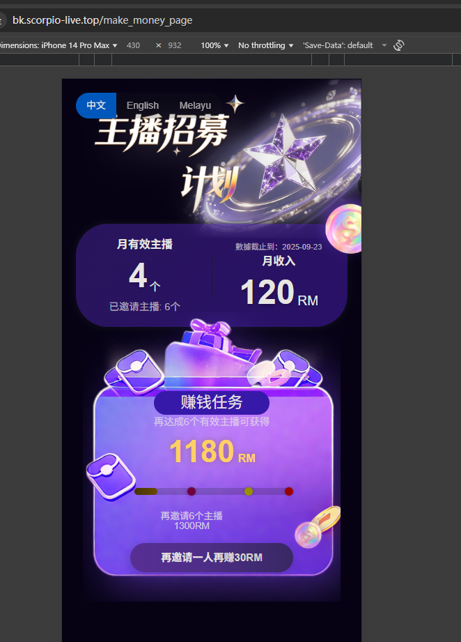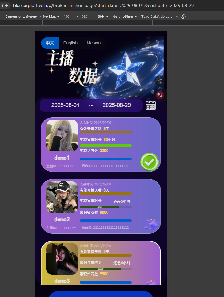 1.主要针对二级经纪人进行主播招募,收益等级展示,以及提现功能
