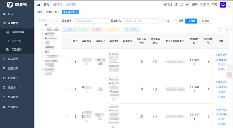 该系统实现了多级管理,实现一次管理产品SKU,下发到所有下级茶饮设备,解决了多门店管理SKU的痛点。同时茶饮设备实现了精准、快速的出品控制,解决了出品把控的同时,将茶饮店的每日出品量提升了数倍,由人工调制出品数日均200杯,至到日均700+杯,有效降低茶饮店的人工成本。