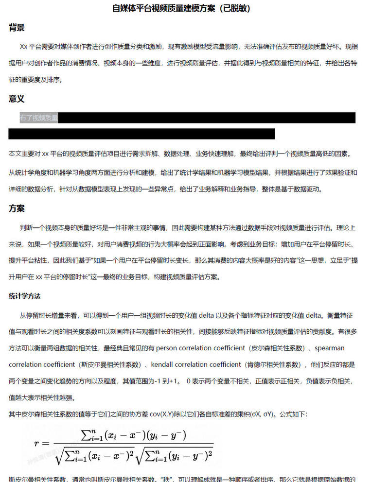 主要对xx平台的视频质量评估项目进行需求拆解、数据处理、业务快速理解,最终给出评判一个视频质量高低的因素。