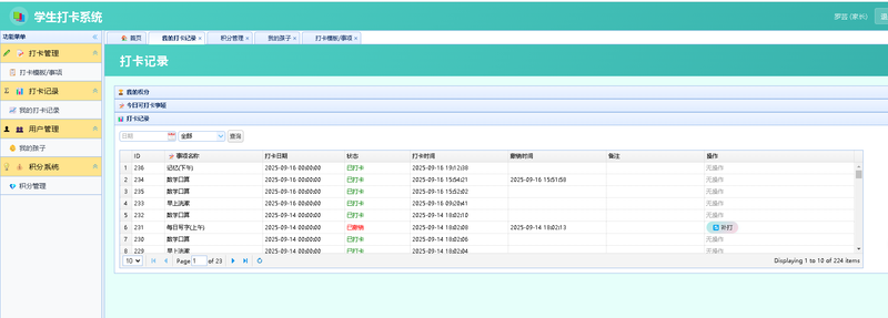 2积分管理:主要是记录孩子平时打卡的积分,可以用积分进行激励