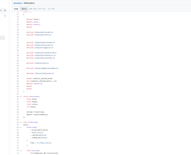 2、一个简单qt多媒体播放器,使用ffmpeg软解码,opengl渲染 ,只支持QML,不支持QWidget,不需要提前编译,直接引入项目即可使用