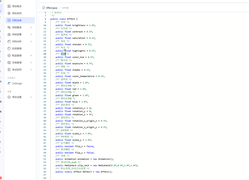 4、可对文字,图片,视频,进行特效处理,一般有:亮度,饱和度,对比度,锐化,高光,色调,曝光度,阴影,RGB色彩调整,旋转,缩放等处理