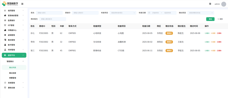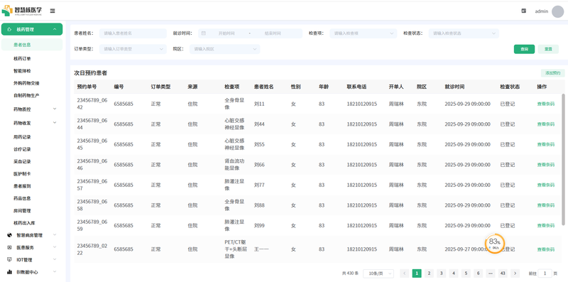 2、检查状态跟踪:跟踪每位患者的检查流程状态,例如“已登记”,后续可能还有“检查中”、“报告完成”等状态。