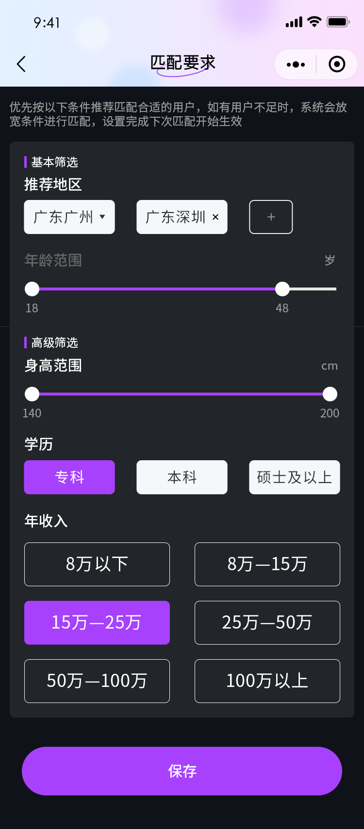 婚恋匹配:、智能推荐个性化匹配、用户筛选