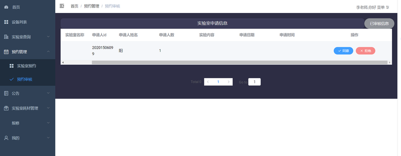教师:可以预约,还能审核自己学生的申请
