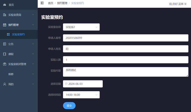 学生:只能预约和使用实验室
