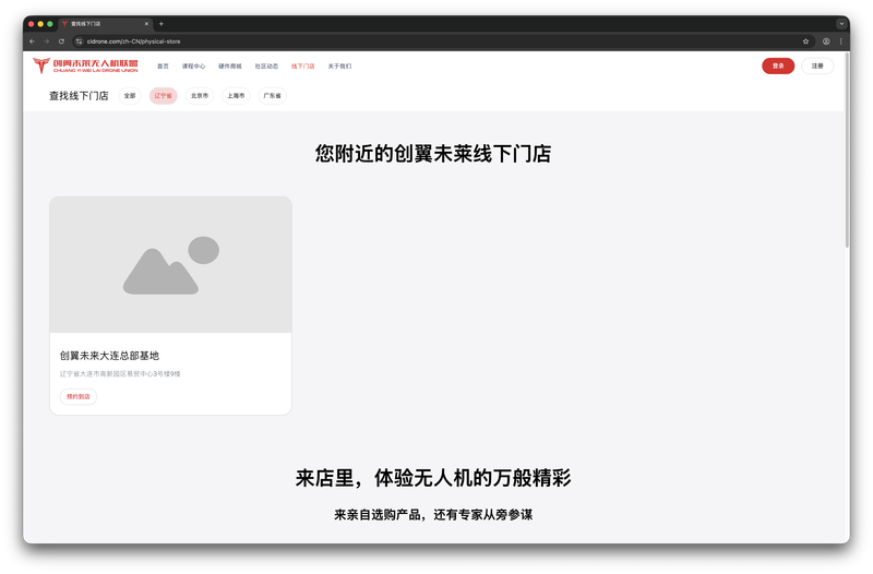 1.可在网站中查找线下门店,在门店中体验无人机以及相关培训课程