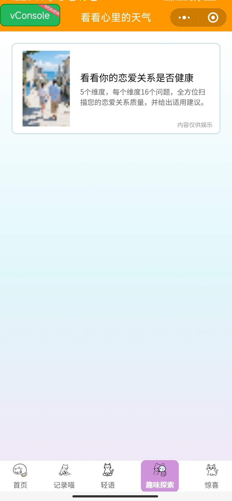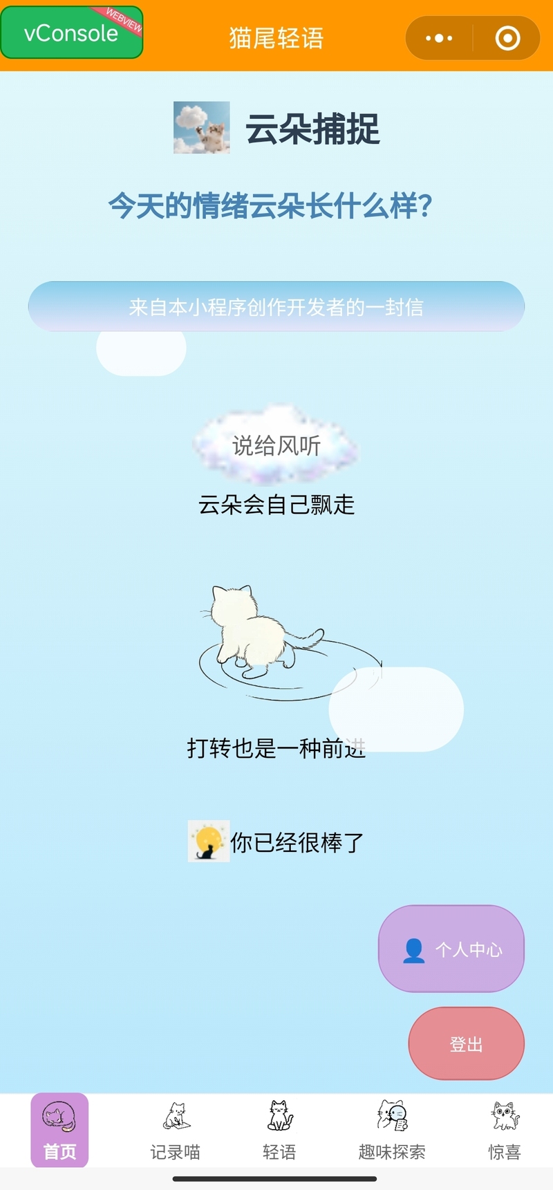 心理健康疏导C端产品,给用户一种放松和治愈的体验。通过多种功能,让用户有舒缓放松的体验,以及获得一些心灵上的开导。