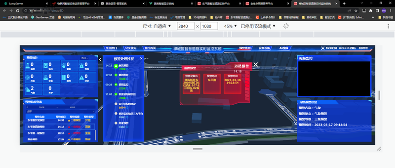 2.预警监测:预警有多种分类,定制各分类下的组件,Mqtt实时接受预警数据,预警流程的展示,预警步骤预道路模型交互等;
