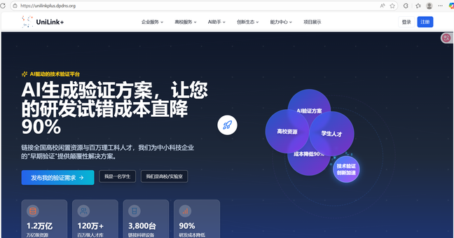 当前产学研合作面临严重的信息不对称和资源错配问题:企业面临创新成本高、周期长、风险大的困境,中小科技企业缺乏专业研发团队;高校拥有大量闲置的科研设备和智力资源,但科研成果转化率不足5%;学生理论知识扎实但缺乏实践项目,能力价值无法被有效证明。传统产学研平台仅提供简单信息撮合,缺乏智能化赋能和全流程管理,导致合作效率低下。