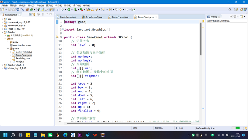 项目实现将严格遵循面向对象的设计原则,创建如GameMain(主类)、GameFrame(主窗口)、GamePanel(游戏画布)、MapData(地图数据)、Player(玩家)、Box(箱子)等核心类。通过将这些类实例化并协同工作,完成整个游戏的逻辑。例如,GamePanel会持有一个MapData对象的引用以获取地图信息,并在其paintComponent方法中调用各个游戏元素的绘制方法。键盘监听器被注册到GamePanel上,当事件触发时,它会调用Player的移动方法,并更新MapData中的位置信息,最后请求重绘。