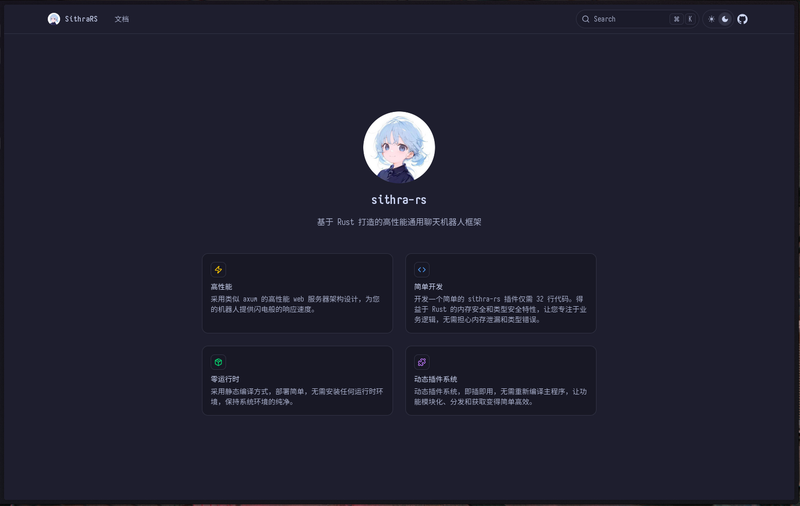 sithra-rs 是一个基于 Rust 实现的跨平台聊天机器人框架,专注于提供高性能和可扩展的机器人开发体验。