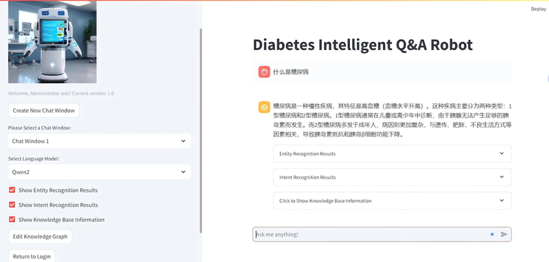 系统实现了糖尿病知识的结构化管理与智能问答服务,极大提升医疗信息交互效率与准确性。