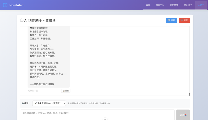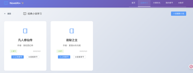 1、上传经典小说,根据每个章节 AI 自动分析,抽离有效的写作技巧并总结