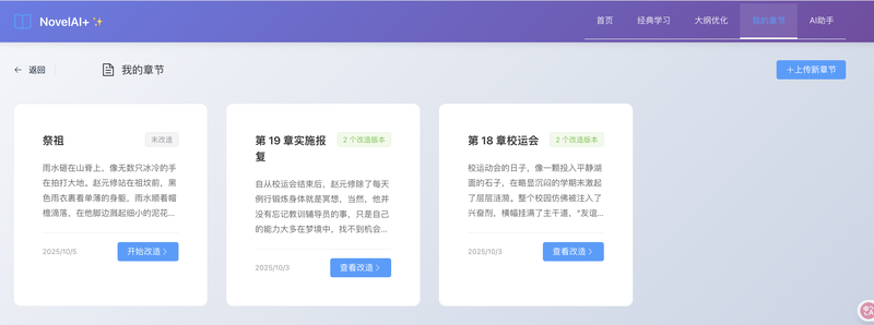 3、可以上传自己的章节,然后结合之前学习的写作技巧对自己的章节进行润色