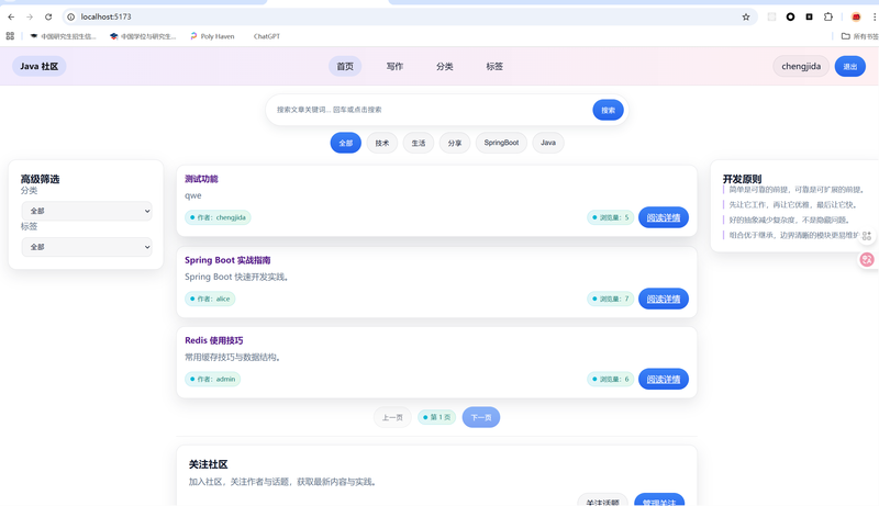 面向Java开发者的技术社区,解决知识散落、缺少结构化分类与高质量互动的问题。