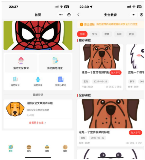 本消防安全教育与隐患排查小程序是一款结合了知识普及、隐患防控、协同治理于一体的数字化平台,旨在通过数字化技术于管理于一体的小程序平台,构建“教育-排查-排除”的综合管理体系,推动消防安全治理从被动应对向主动预防的一次转型。系统基于微信小程序架构,以轻量化、低门槛的设计理念适配多场景需求,主要包含以下核心内容,设计如下: