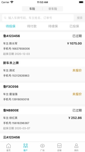 订单模块:管理保险订单,重新报价、续保、查看保单信息等功能