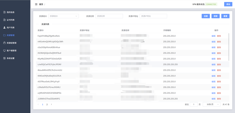 开发全部核心模块:独立完成了用户管理、动态证书生成与管理、网络资源访问控制、客户端管理以及动态域名解析等所有核心功能的开发与维护。