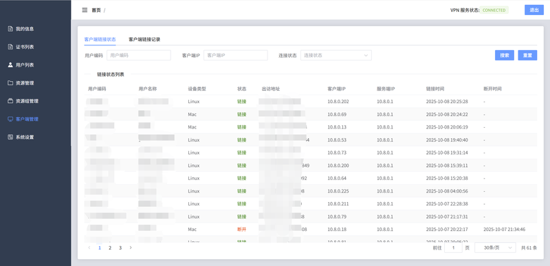 基于OpenVPN开发的内部远程接入管理服务,旨在统一、安全地管理员工对公司内部网络资源的访问。