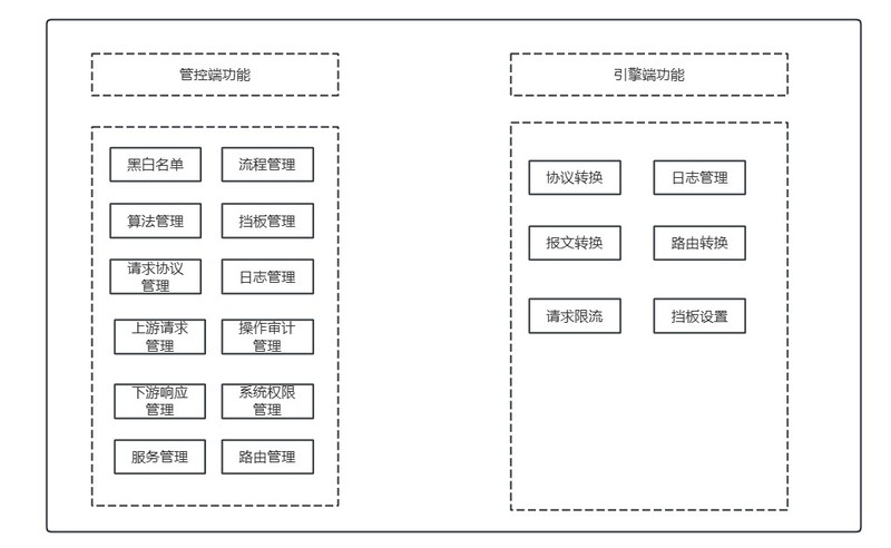 网关项目整体划分为配置管理端和服务引擎端,配置端主要是对各个业务系统的请求需要的数据、协议进行管理,主要的核心功能有:系统应用管理、协议管理、处理流程管理、服务管理、密钥管理、日志管理、黑白名单管理等模块。服务引擎端主要是自动加载配置的端的服务请求数据信息,对请求进行数据处理,其核心模块主要有:配置的热更新、服务注册、日志存储、数据处理等模块。