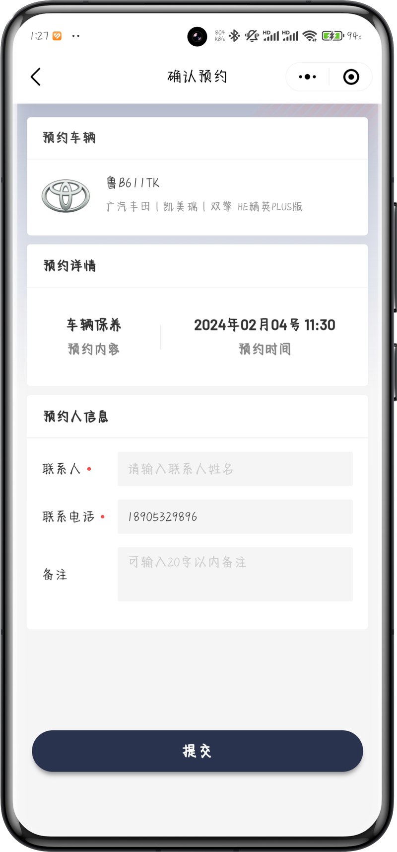 实现功能:可为用户提供车辆维保服务,及时预约试驾或保养,提供二手车及新车最新信息。提前获取信息。节省客户到店预约时间提前安排等服务。
