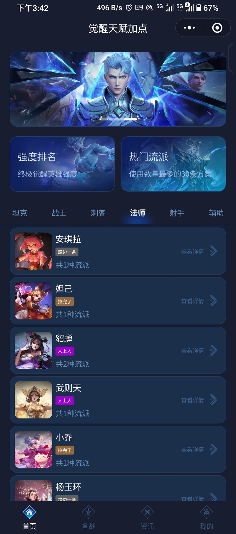 多维度筛选:支持按英雄定位(坦 / 战 / 刺等)、热门度、胜率筛选,还能根据玩家历史查询推荐适配方案。