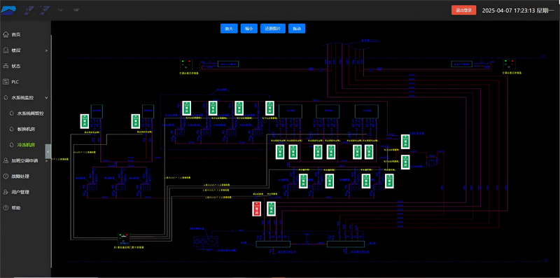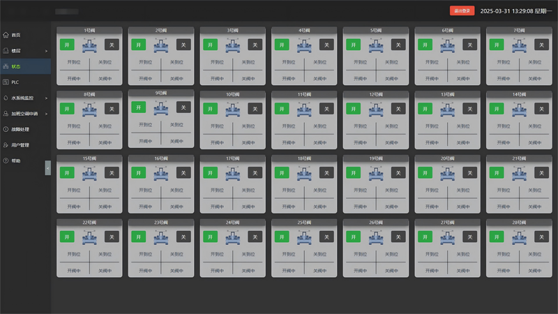 水阀状态监测模块实时监测每个水阀的运行状态(开启 / 关闭 / 故障)及物理位置(如开度百分比),数据同步展示在系统界面,支持历史状态查询与异常标记,辅助管理人员掌握空调水循环系统的实时工况,为能耗分析和故障排查提供数据支撑。
