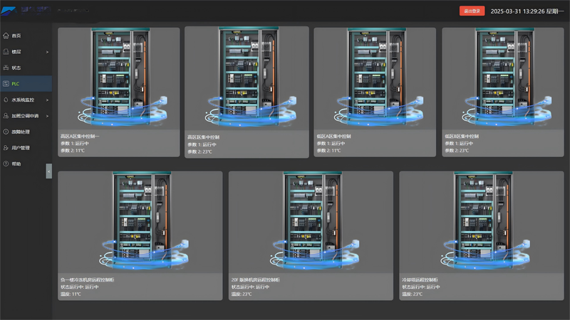 PLC 设备状态监控模块实时采集并展示 PLC 控制柜的关键数据:包括通讯状态(在线 / 离线 / 异常)、柜内温度数值,支持异常状态(如通讯中断、温度超标)自动报警(弹窗、消息推送),帮助运维人员快速定位设备故障,保障系统稳定运行。