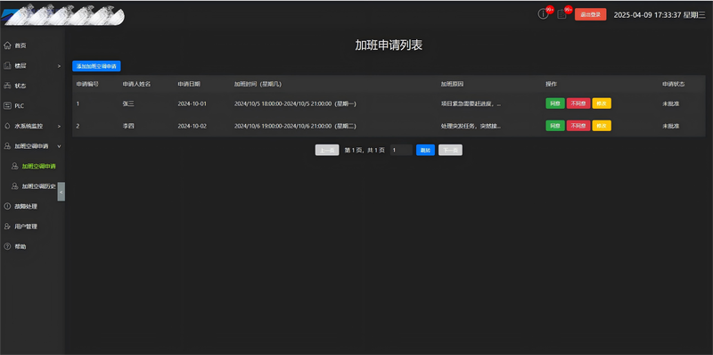 加班空调申请与审批模块集成手机 APP 端申请入口与管理员审批流程:用户通过 APP 提交加班时段、涉及区域的空调使用申请;管理员在系统后台或 APP 端接收申请,可查看申请详情(如加班时长、涉及设备)并进行 “通过 / 驳回” 操作。审批通过后,系统自动联动对应区域空调按申请时段开启,结束后自动关闭,避免无效能耗。