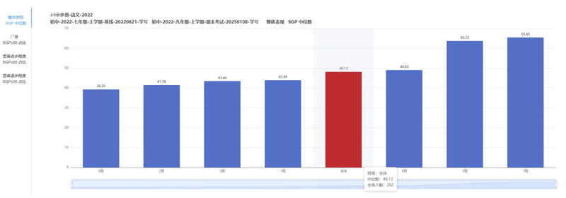 随着国家《教育信息化2.0行动计划》的深入推进和“数据驱动因材施教”理念的普及,区域教育局和学校对利用教育大数据实现精细化管理和科学决策的需求日益迫切。SGP(学生成长百分模型)作为一种先进的增值性评价模型,能够剥离学生起点差异的影响,公平地评估学校、教师对学生学业成长的“净效应”,在国际上已被广泛认可。因此,我们立项开发了这款SGP教育数据可视化平台,旨在打通多源数据,以SGP模型为核心分析方法,通过强大的可视化能力,将复杂的数据转化为易于理解的图表和洞察,为区域教育质量监测、学校教学管理优化及教师的个性化教学干预提供专业的、数据驱动的解决方案,最终推动教育评价体系从“重分数”向“重成长”转变。