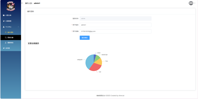 集成ECharts,为管理员提供直观的数据看板,实时展示文章分类、标签等关键数据的分布情况。
