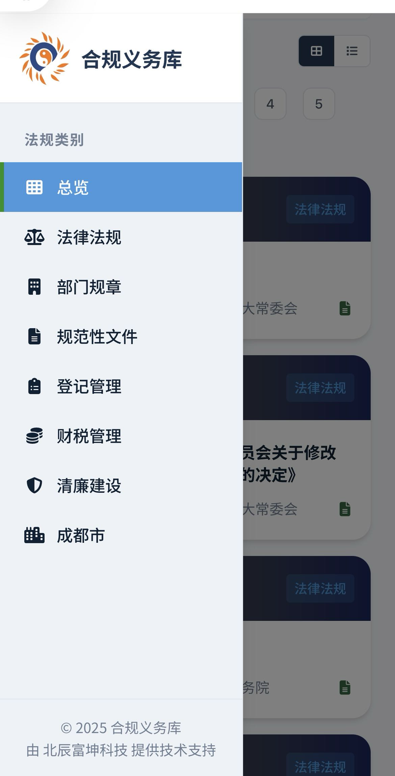 合规知识库模块:整合各类法律法规、行业合规标准,为AI分析提供规则支撑,也可供用户查询合规知识。