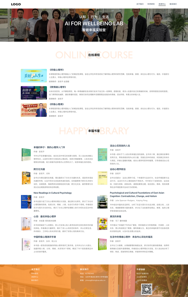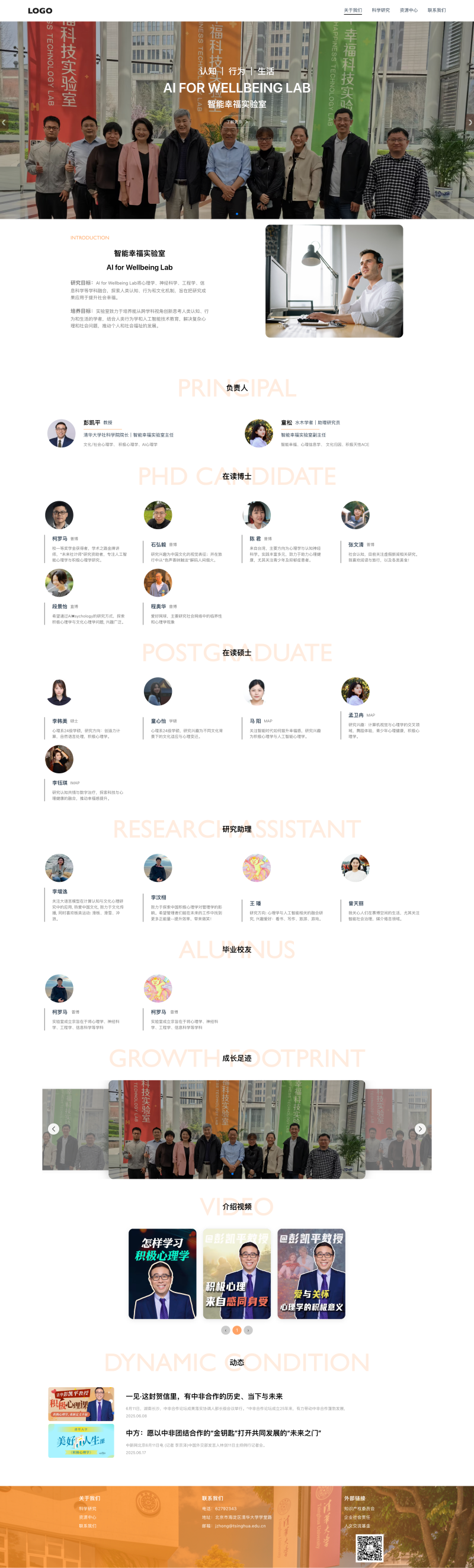 AI for Wellbeing 实验室是一个专为大学研究团队打造的专业学术网站,该团队专注于人工智能与心理学领域。网站以简洁有序的布局介绍了实验室成员、正在进行的研究、在线课程以及已发表的作品。该网站采用现代前端技术构建,将极简主义的用户界面与清晰的排版和响应式布局相结合,以确保在所有设备上的可读性和可访问性。