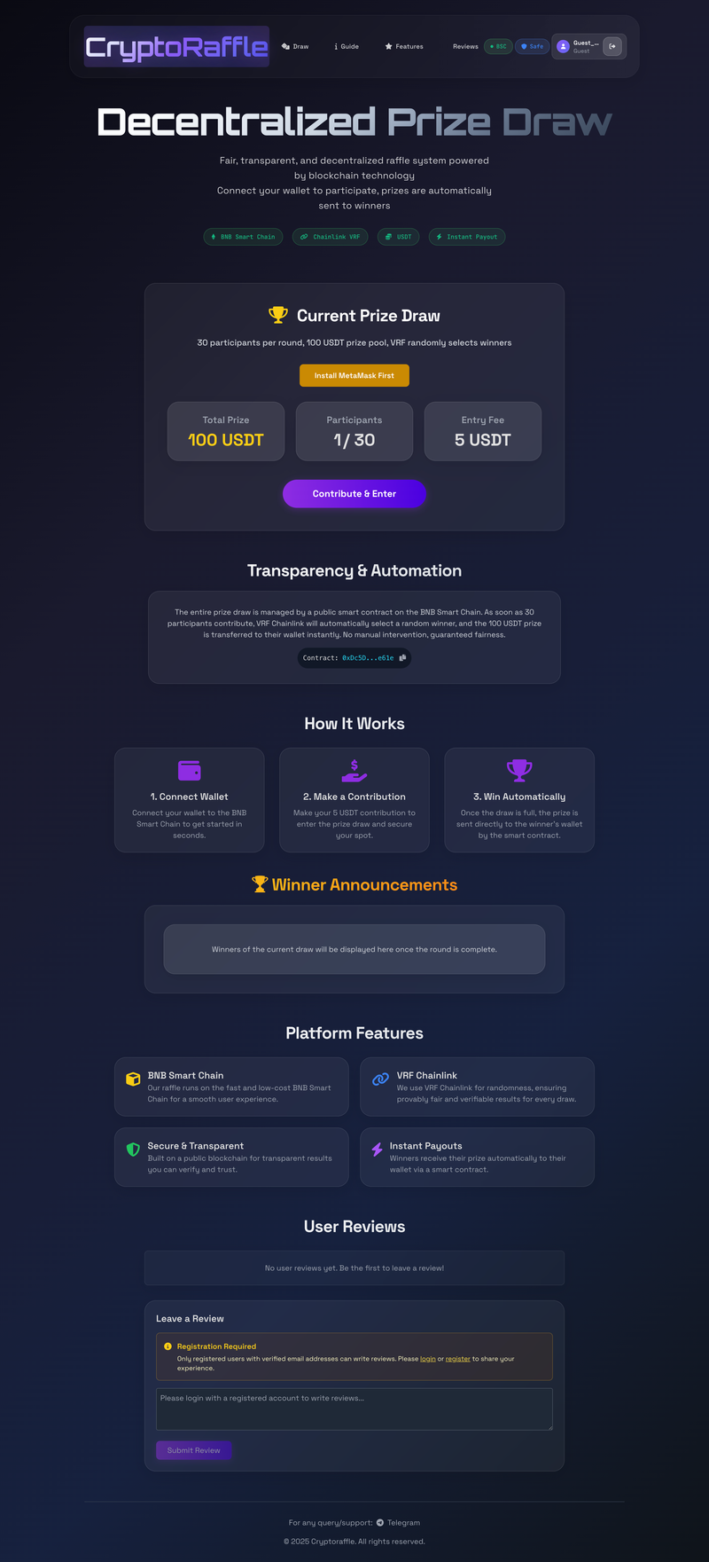 • 智能合约自动化 — 在 BNB 链上无缝处理报名、抽奖和支付流程。