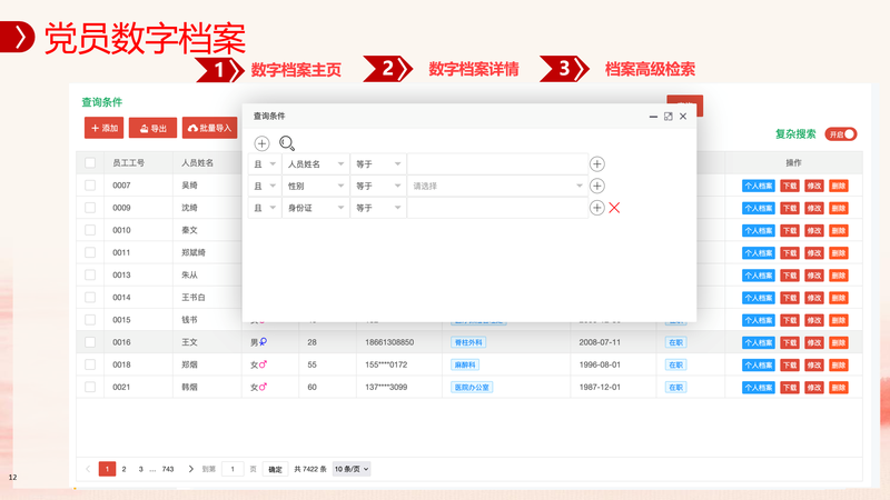 构建机构的人员数字档案,将人员信息拆分可量化的数字,并进行集中存储和管理